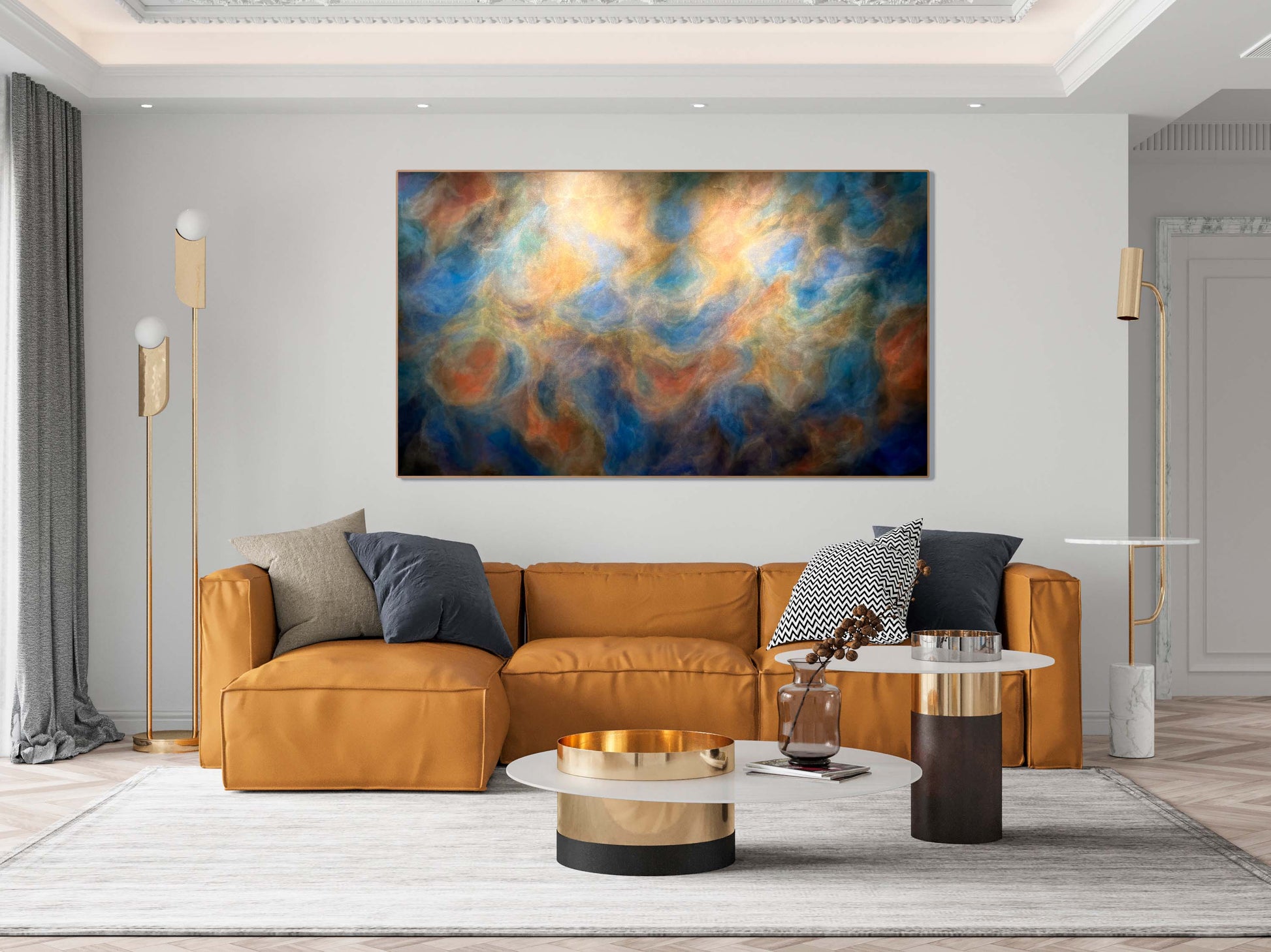 123x213cm, framed in Tasmanian oak float frame.